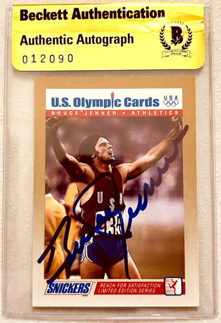 - Bruce Jenner’s bold autograph across the officially postmarked "First Day of Issue" Olympic decathlon stamps