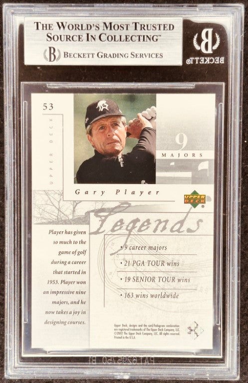This collection honors the legendary Gary Player, showcasing a rare blend of authenticated trading cards and memorabilia that capture iconic moments from his career. Featuring high-grade collectibles that appeal to anyone passionate about golf’s greatest players, these items bring the excitement of the game right to your doorstep.