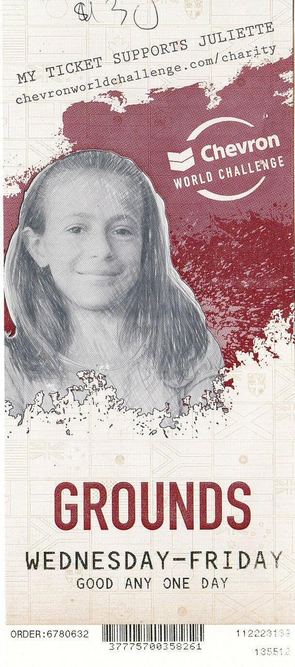 Billet de golf Chevron World Challenge 2010 du tournoi de la saison des silly au Sherwood Country Club organisé par Tiger Woods. Graeme McDowell a gagné. Il présente des trous d'agrafes et des inscriptions ainsi que des défauts et une usure mineurs à modérés. SEULEMENT 2 DISPONIBLES À LA VENTE.