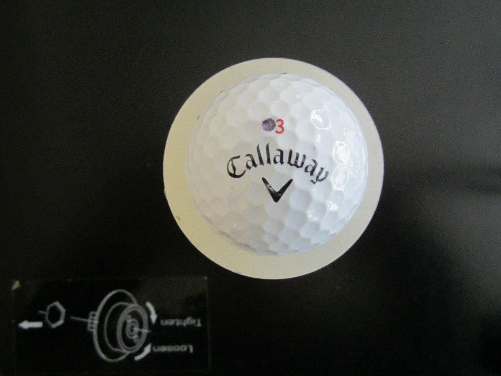 Balle de golf Callaway utilisée par le joueur du PGA Tour Adam Hadwin lors d'une partie du tournoi Farmers Insurance Open 2017, dédicacée au marqueur noir. Obtenue en personne, avec certificat d'authenticité d'AutographsForSale.com. UN SEUL exemplaire disponible à la vente.