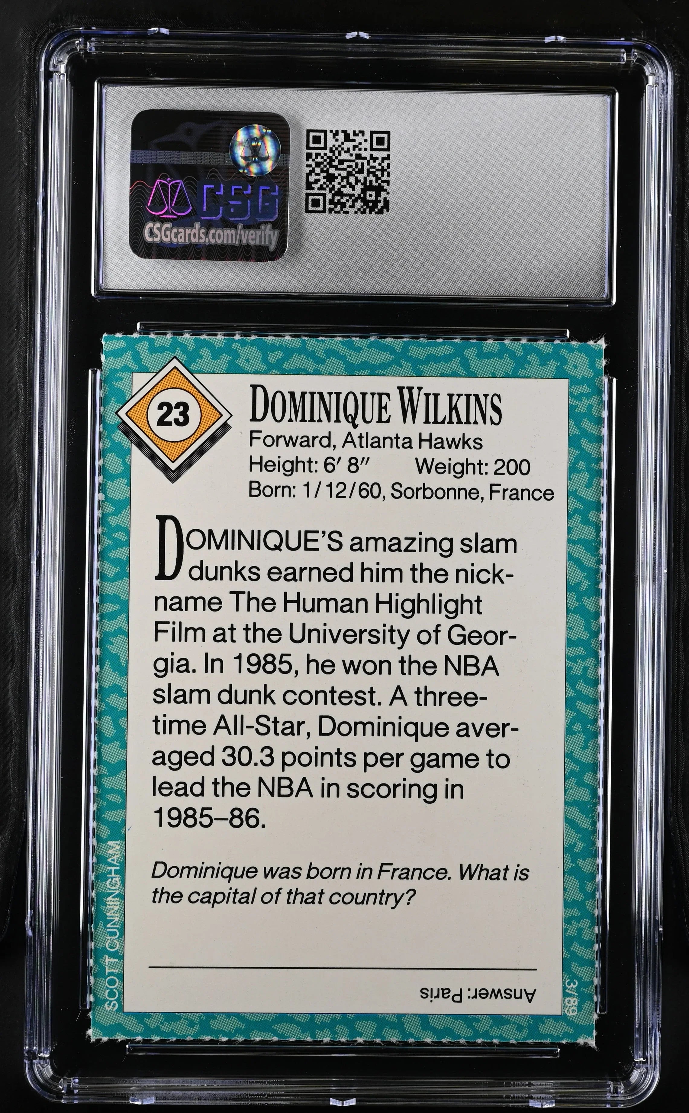 Dominique Wilkins Atlanta Hawks 1989 Sports Illustrated for Kids card CSG graded 8.5 - AutographsForSale.com