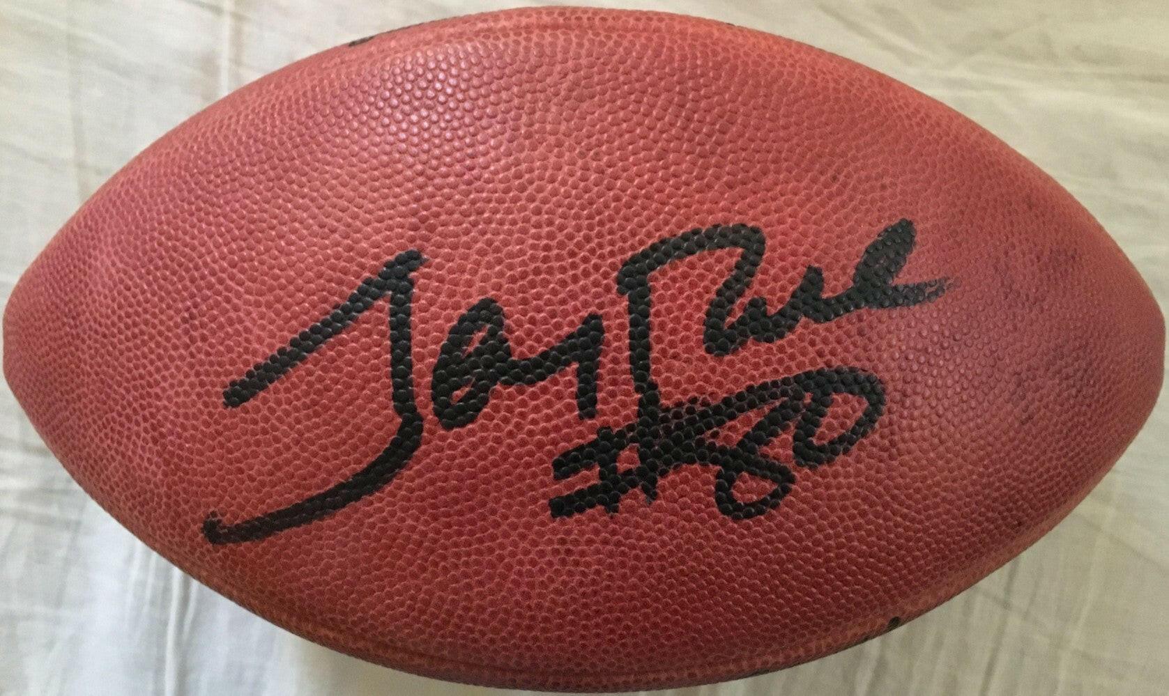 Ballon de football américain Wilson NFL en cuir, modèle de jeu, autographié au marqueur noir épais par six membres clés de la dynastie des 49ers de San Francisco des années 1980 : Jerry Rice, Roger Craig, Fred Dean, Charles Haley, Dwight Hicks et Keena Turner. Également signé par Michael Carter, Ronnie Lott et Carlton Williamson, mais ces signatures sont très décolorées et d'autres signatures très décolorées ont été écrasées. Avec certificat d'authenticité d'AutographsForSale.com. LA VESSIE A JUSTE ÉTÉ REMPLACÉE, CE BALLON DE FOOTBALL RESTERA GONFLÉ PENDANT DE NOMBREUSES ANNÉES. UN SEUL DISPONIBLE À LA VENTE.