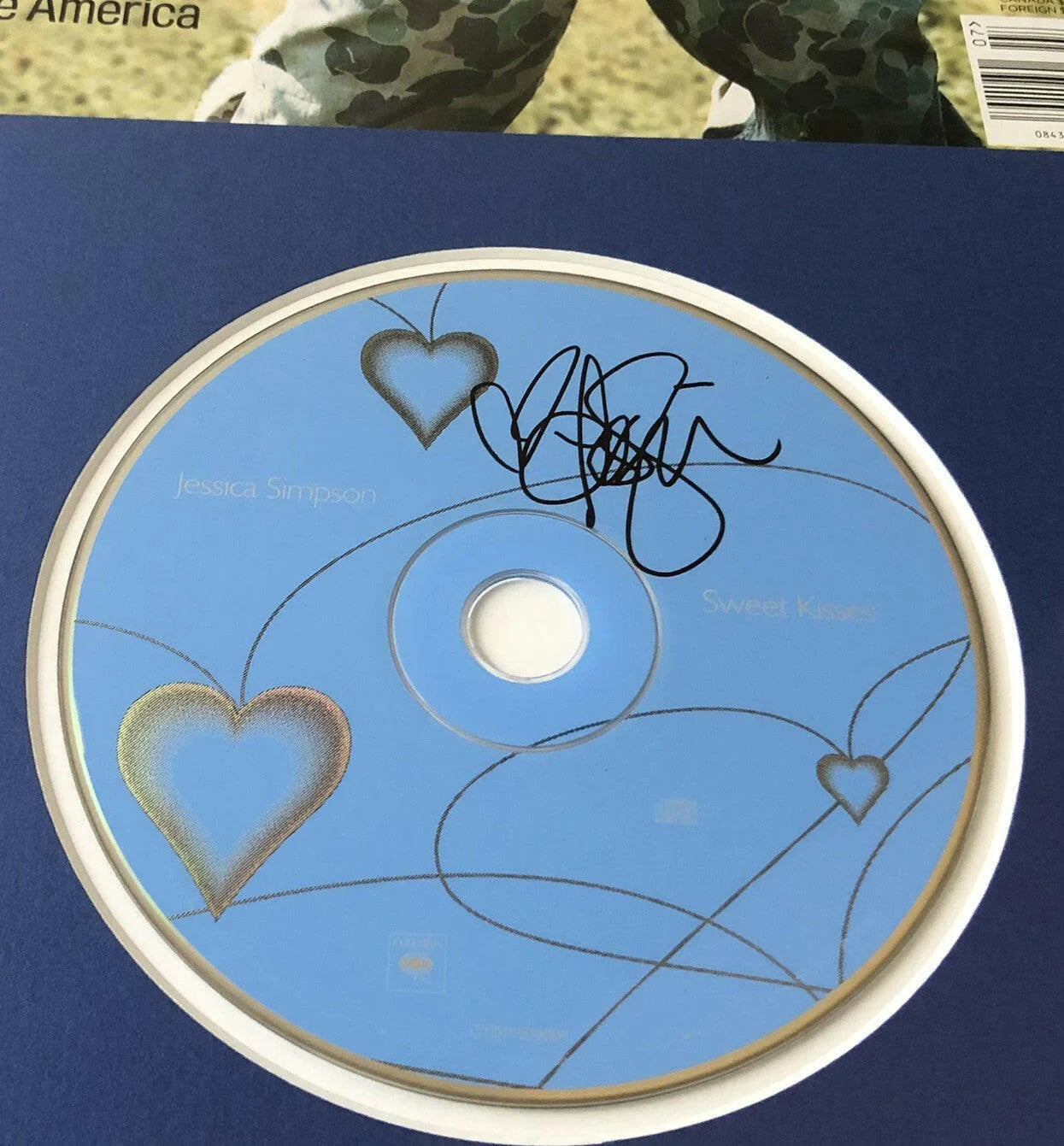CD Sweet Kisses autographié au marqueur noir par la superstar de la pop Jessica Simpson, encadré professionnellement en bleu avec une couverture de bikini du magazine GQ de 2005 et encadré avec un verre en rouge, prêt à accrocher. La taille du cadre est d'environ 13 1/2 par 21 1/2 pouces. Obtenu en personne. Authentifié par JSA avec leur autocollant numéroté correspondant au dos du cadre et la carte de certificat d'authenticité. UN SEUL DISPONIBLE À LA VENTE.