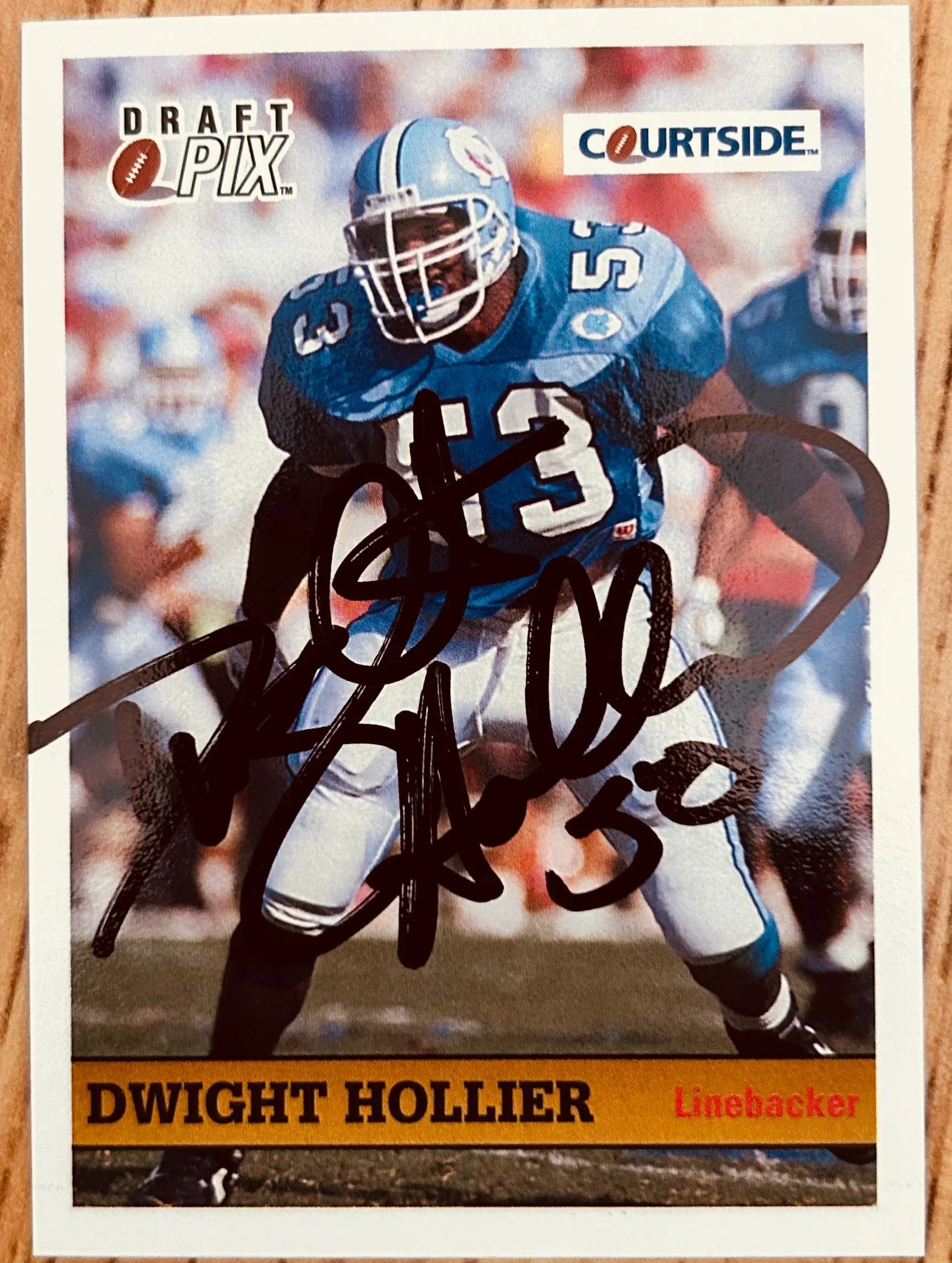 1992年、ノースカロライナ大学元ラインバッカーで、後にマイアミ ドルフィンズのスター選手となったドワイト ホリアーのコートサイド認定サインカード。真正性を証明する本物のサインが下部に印刷されています。NRMT 以上。販売できるのは 2 枚のみです。