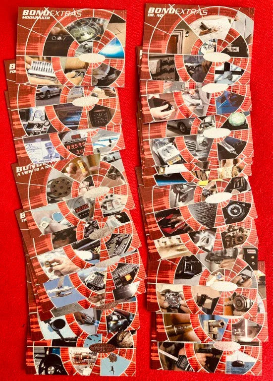 James Bond 007 40th Anniversary 2002 Rittenhouse complete set of 19 Extras chase or insert cards featuring the gadgets, vehicles, weapons etc from the legendary movie series. All cards pack fresh and NrMt-Mt or better.