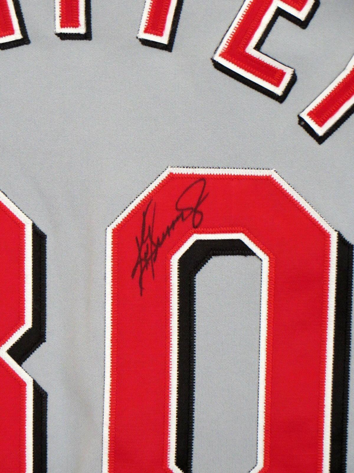 ケン・グリフィー・ジュニア、シンシナティ・レッズの本物のラッセル・アスレチックの試合モデル、ロードグレーのXLサイズのジャージベスト(お揃いの黒のTシャツ付き)。背中に素敵なサインが入っています。グリフィーとレッズは、1999年から2006年までこのユニフォームをロードで着用しました。ジャージの番号付きホログラムと真正性証明書を含む、UDAの特許取得済みの5段階のプロセスで認証されています。販売可能なのは1点のみです。(モデル:レイヴン・リネット)
