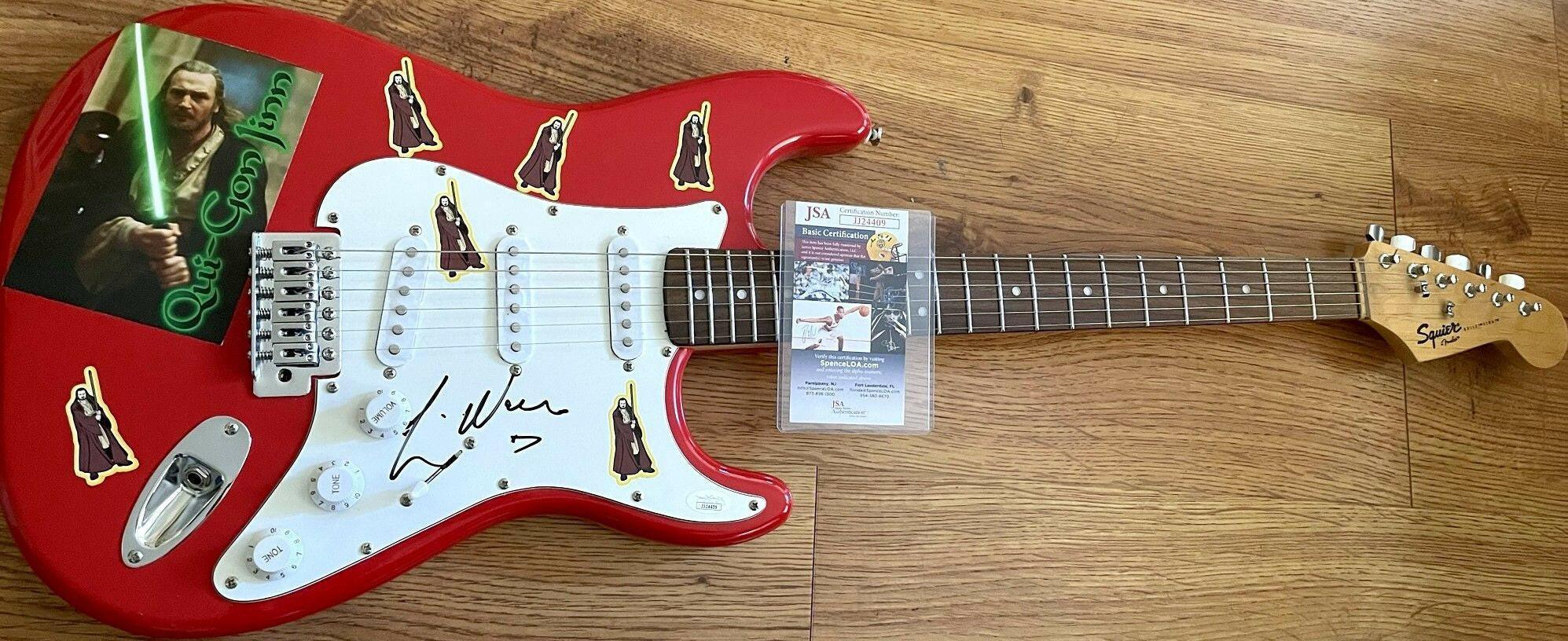 リーアム・ニーソンのサイン入りスターウォーズ クワイ=ガン・ジン フェンダー バレット エレキギター JSA