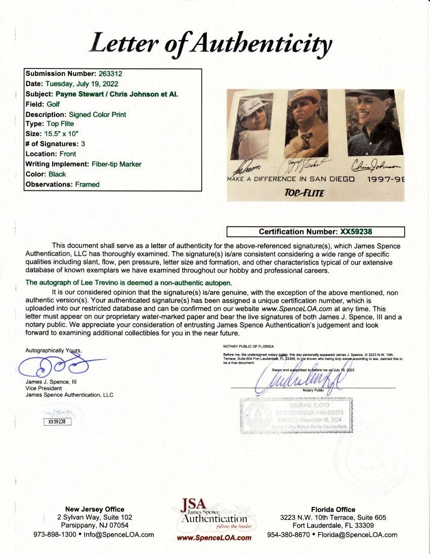 Payne Stewart signed Top-Flite 1997 1998 golf poster framed JSA - AutographsForSale.com