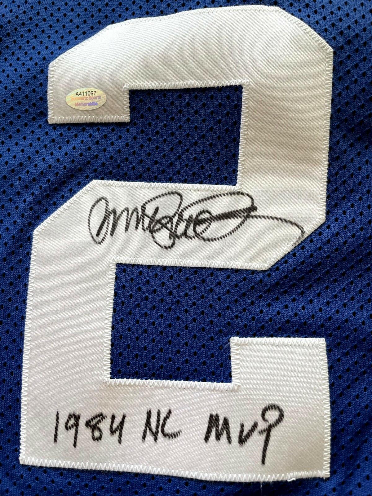 ライン・サンドバーグ シカゴ・カブス 本物オリジナル ローリングス ブルー メッシュ 1980 年代 バッティング プラクティス ジャージ L サイズ。背中にタックル ツイルのステッチ入り。背番号 23。背中 2 に黒のシャーピーでサイン。1984 NL MVP の刻印。シュワルツ スポーツによる有料サインで、ジャージと証明書カードに番号入りホログラムが付いています。ジャージは新品で紙タグ付き。未使用です。L サイズまたは XL サイズからお選びいただけます。