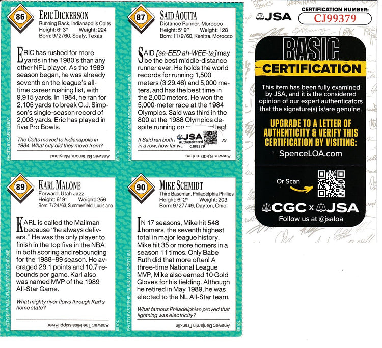 October 1989 Sports Illustrated for Kids 4-card panel autographed in blue or black Sharpie by three Hall of Fame legends: