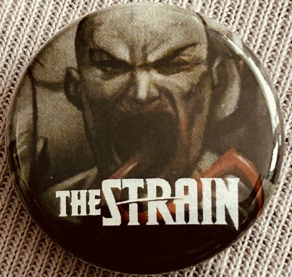 直径わずか 1 インチ未満の小さなボタンまたはピン。何年も前にサンディエゴ コミコンで The Strain TV シリーズのプロモーション用に配布されました。販売できるのは 1 つのみ。