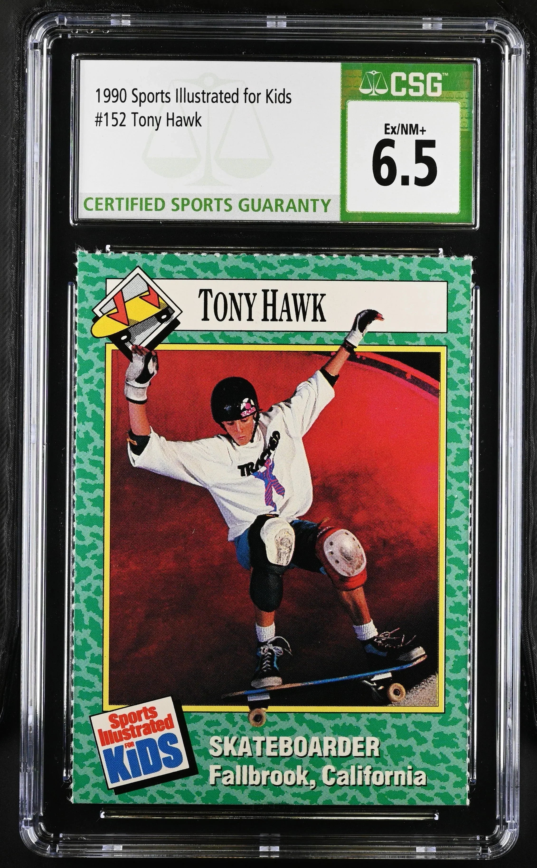 トニー・ホーク 1990 Sports Illustrated for Kids スケートボード ルーキー カードは、Certified Sports Guaranty によって 6.5 ExMt/NrMt+ と評価されています。