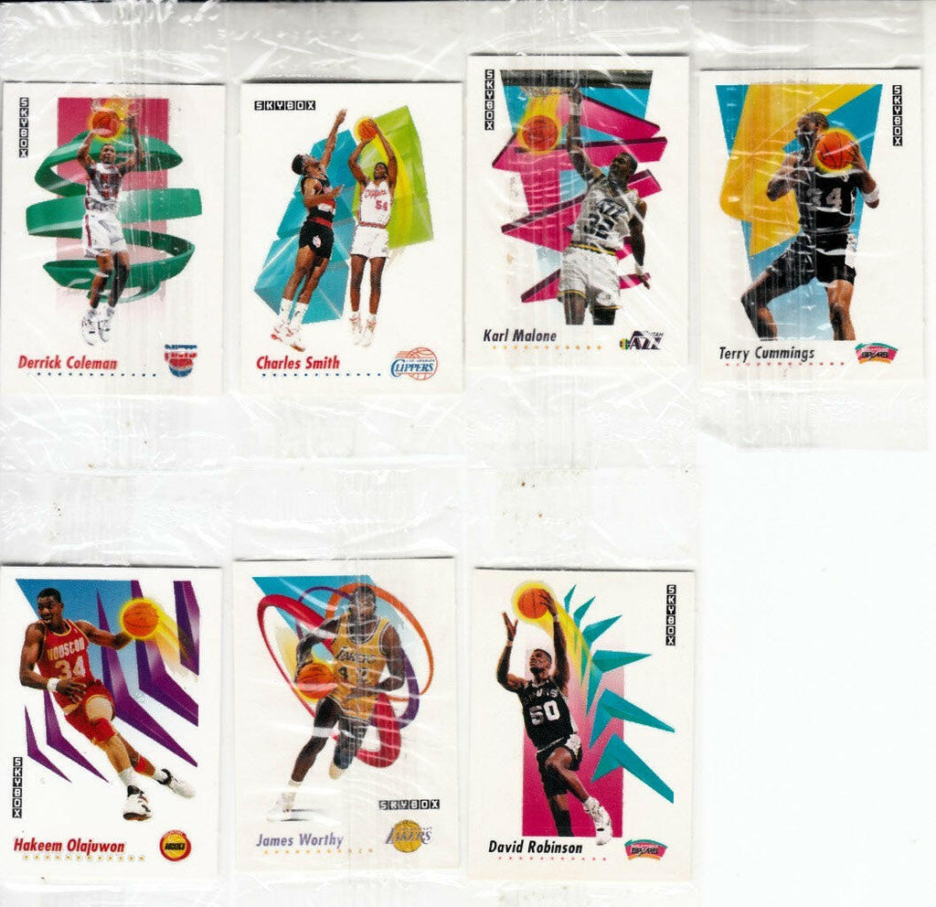 Lot of 4 1991-92 SkyBox mini basketball cards (distributed only in Canada) including David Robinson #43, Derrick Coleman #31 (2) and Charles Smith #24. SEALED IN ORIGINAL PLASTIC. ONLY ONE LOT AVAILABLE FOR SALE.
