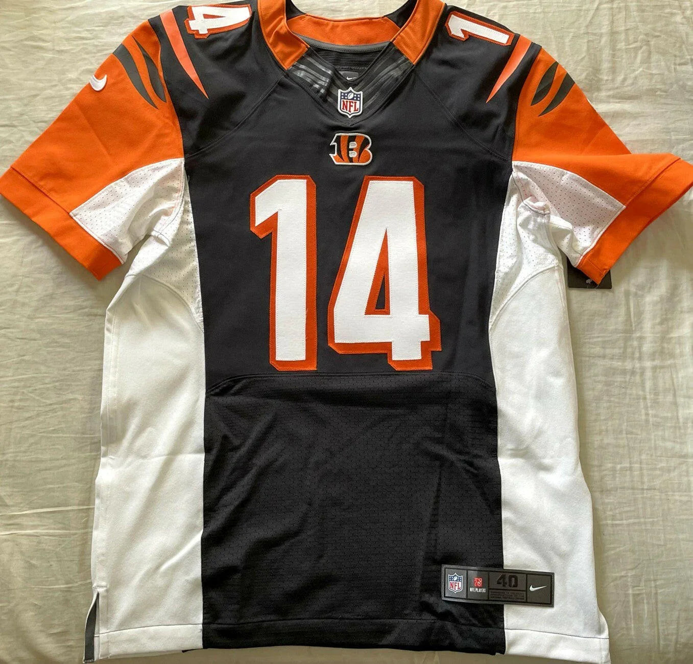Rare Andy Dalton Cincinnati Bengals 2012 through 2016 authentic Nike Elite game model double layer stitched black jersey with original nameplate. Size 40 (about MEDIUM). This is nearly identical to the jersey Dalton wore on the field during the 2012 through 2016 seasons. BRAND NEW, NEVER WORN, with PAPER TAGS.