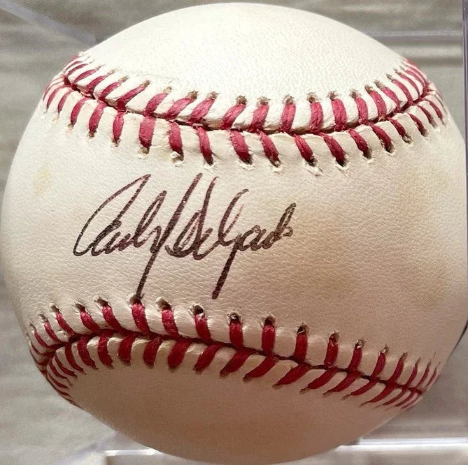 Official Rawlings American League baseball autographed in black ballpoint pen on the sweet spot by former Toronto Blue Jays and New York Mets superstar slugger Carlos Delgado. Authenticated by Athletes Direct, with their matching numbered holograms on the ball and certificate of authenticity. BASEBALL HAS MINOR TO MODERATE AGE DISCOLORATION. ONLY ONE AVAILABLE FOR SALE.
