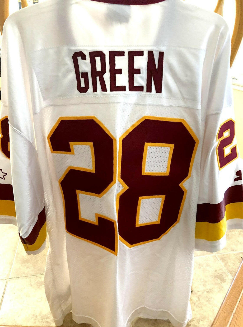 Darrell Green Washington Redskins white original 1999 to 2001 style Adidas jersey with stitched-on double layer cloth tackle twill name (NO NAMEPLATE) and numbers. SIZE 3XL. The armpit corner to armpit corner measurement is about 28 1/2 inches, top of back collar to bottom front is about 34 1/2 inches. Appears new and never worn (no paper tags).