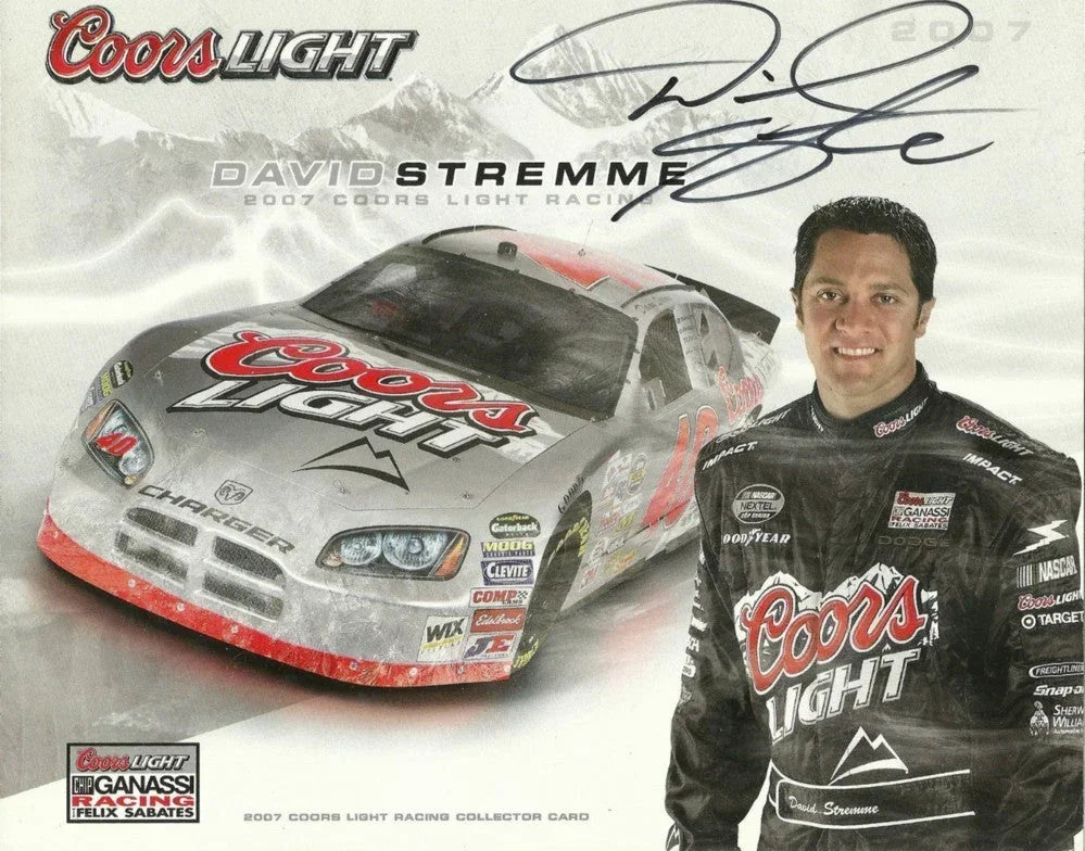 Celebrate NASCAR history with this exclusive David Stremme autographed 2007 Coors Light 8x10 photo card. Perfect for racing fans and collectors alike, this unique piece brings a touch of authentic motorsport memorabilia to your collection. Enhance your display with a genuine autographed racing 8x10 that captures a moment of NASCAR heritage.