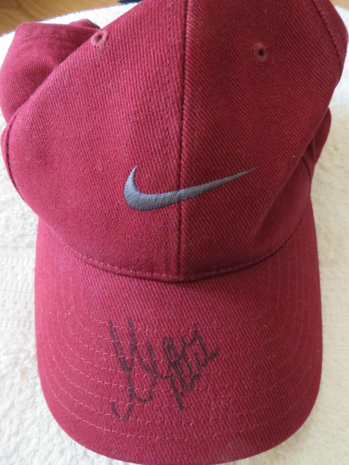 Crimson Nike golf cap or hat autographed on the bill in black Sharpie by former LPGA Tour star Grace Park. Obtained in person, with certificate of authenticity from AutographsForSale.com. ONLY ONE AVAILABLE FOR SALE.