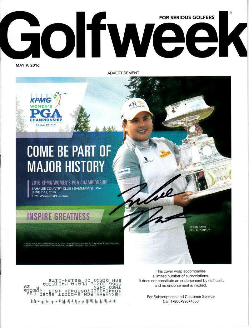 2016 Golfweek magazine with cover featuring Inbee Park celebrating her 2015 Women’s PGA Championship victory autographed in black Sharpie by the LPGA superstar. Obtained in person. With certificate of authenticity from AutographsForSale.com. ONLY ONE AVAILABLE FOR SALE.