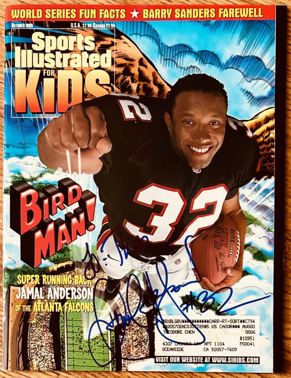 Jamal Anderson signed Atlanta Falcons 1999 SI for Kids magazine