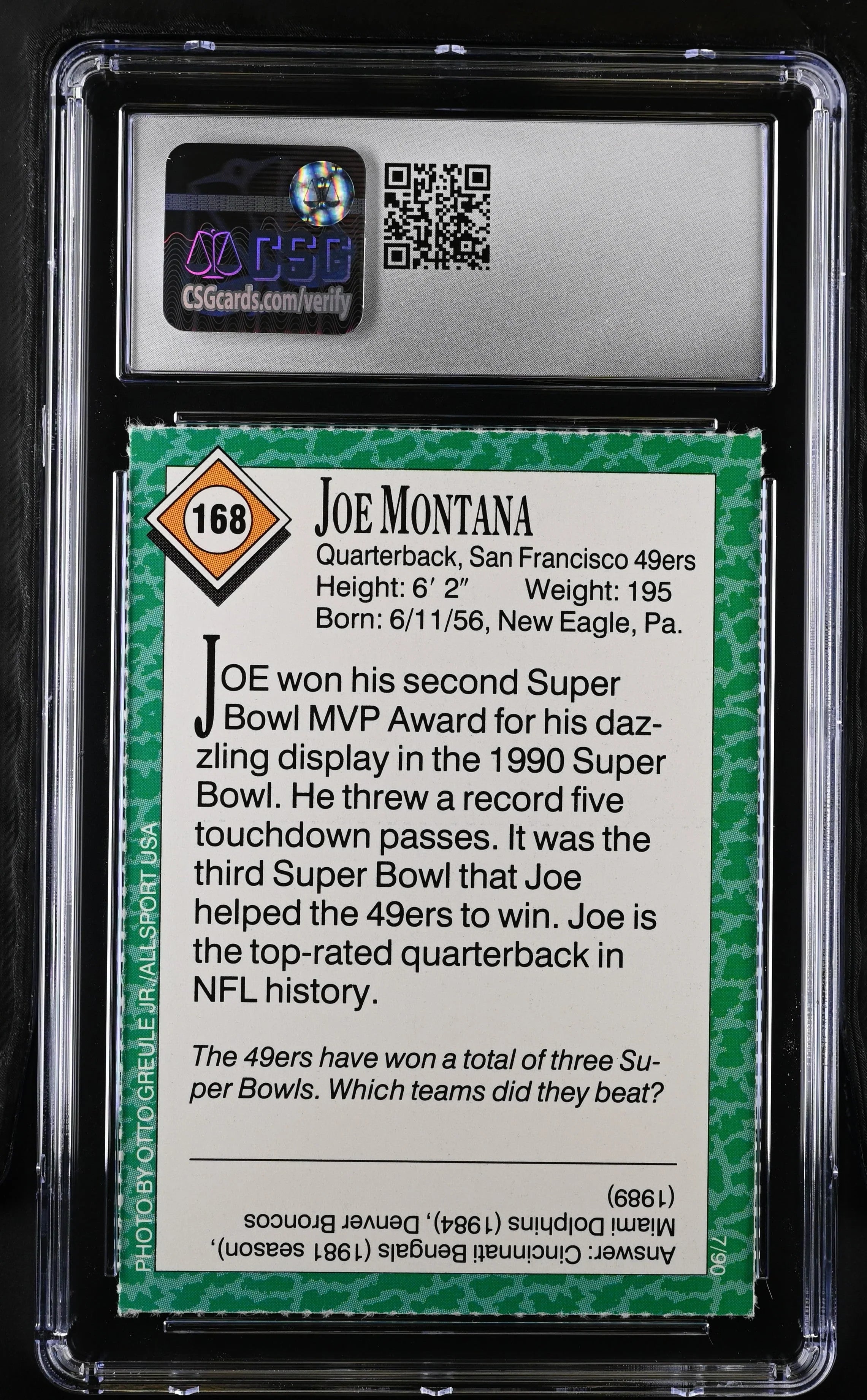 Joe Montana San Francisco 49ers 1990 Sports Illustrated for Kids card graded 9.5 MINT PLUS (GEM MINT) by Certified sports Guaranty (CSG). This is a very high grade for this or any SI for Kids card. ONLY 2 AVAILABLE FOR SALE.