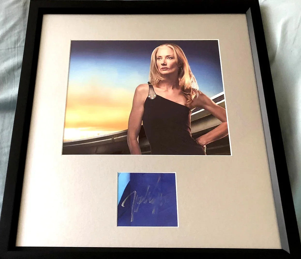 Autograph signed in silver Sharpie by actress Joely Richardson, professionally matted in Silver with a Nip/Tuck 8x10 photo, framed with glass in black wood, ready to hang. Framed size is about 15 1/2 by 16 1/2 inches. Authenticated by JSA with their matching numbered sticker on the back of the frame and certificate of authenticity card. ONLY ONE AVAILABLE FOR SALE.