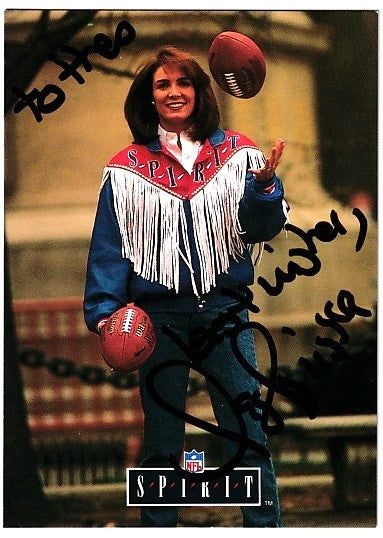 1992 Pro Line Portraits card autographed in black Sharpie by veteran sportscaster Lesley Visser, inscribed To Theo Best Wishes. Visser was one of the first females to break into a male-dominated business. Obtained in person. With certificate of authenticity from AutographsForSale.com.