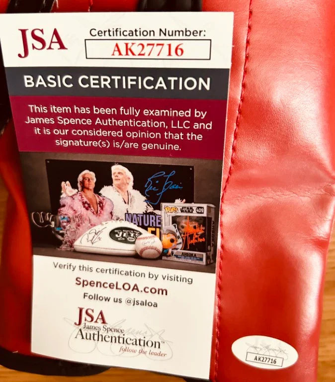 Everlast 14 ounce leather boxing glove autographed in silver paint pen by Filipino boxing champion Manny Pacquiao and he added his nickname Pac-Man. Authenticated by JSA with their matching numbered sticker on the glove and certificate of authenticity card.