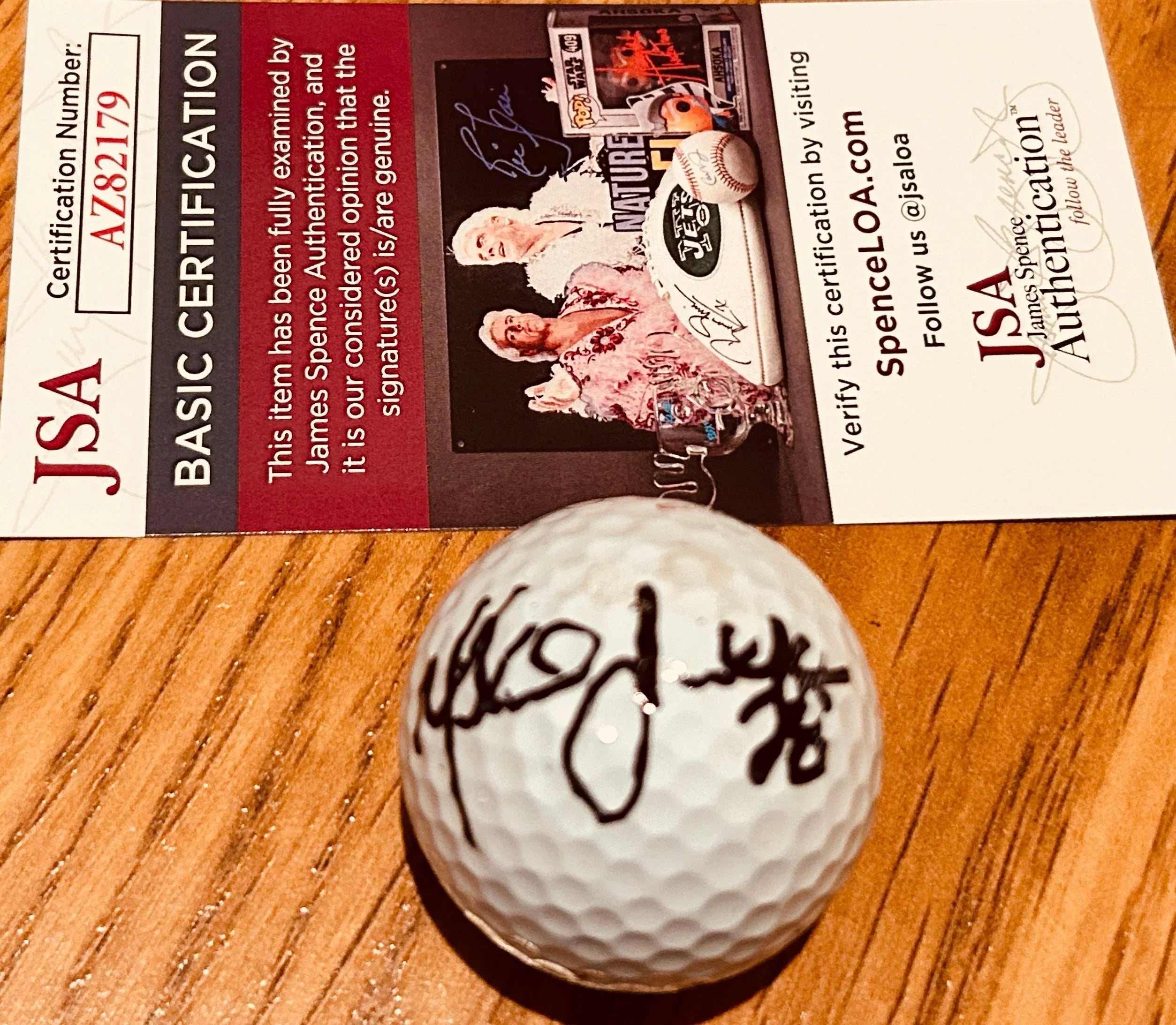 Top Flite golf ball autographed in black Sharpie by former Indianapolis Colts and St. Louis Rams superstar running back Marshall Faulk. NOTE: ball has minor scuffing just above the signature. Authenticated by JSA with their matching numbered sticker on the ball and certificate of authenticity card. ONLY ONE AVAILABLE FOR SALE.
