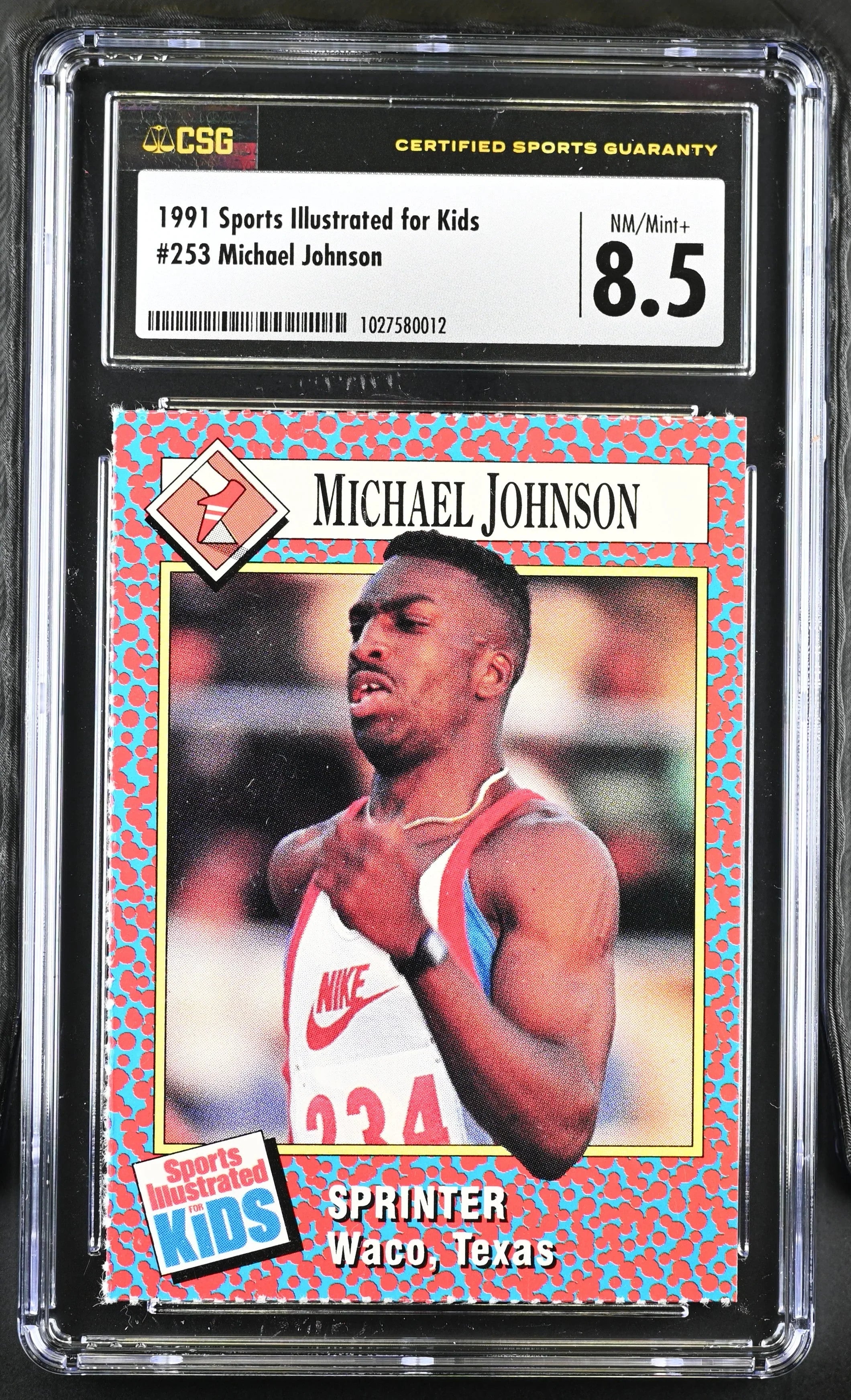 Legendary sprinter Michael Johnson 1991 Sports Illustrated for Kids Rookie Card graded 8.5 NrMt-Mt+ by Certified sports Guaranty (CSG). This is an extremely high grade for this or any SI for Kids card. ONLY ONE AVAILABLE FOR SALE.