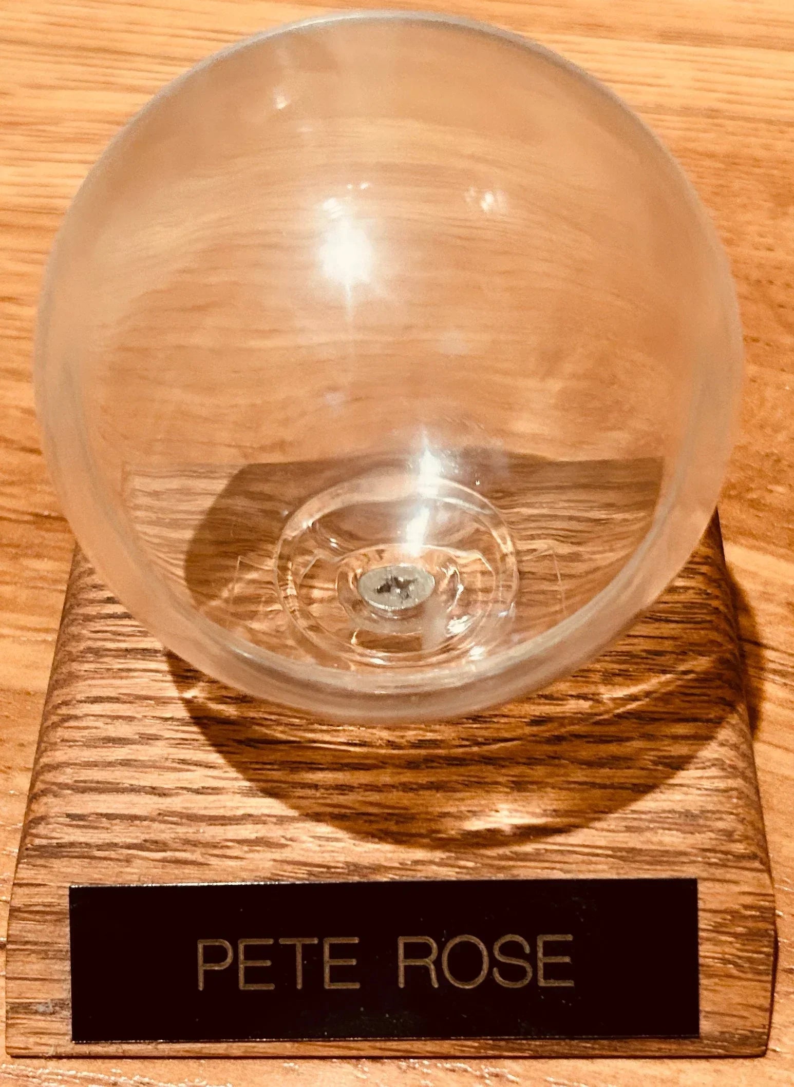 - Black etched nameplate prominently displays Pete Rose’s name