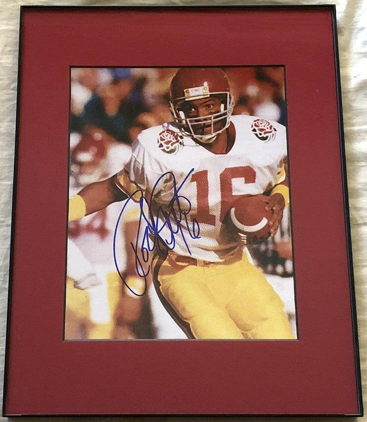 8x10 Rose Bowl action photo autographed in blue Sharpie by former USC All-American quarterback Rodney Peete. Peete led the Trojans to Pasadena after the 1987 and 1988 seasons. Authenticated by JSA with their matching numbered sticker on the photo and certificate of authenticity card. ONLY ONE AVAILABLE FOR SALE.
