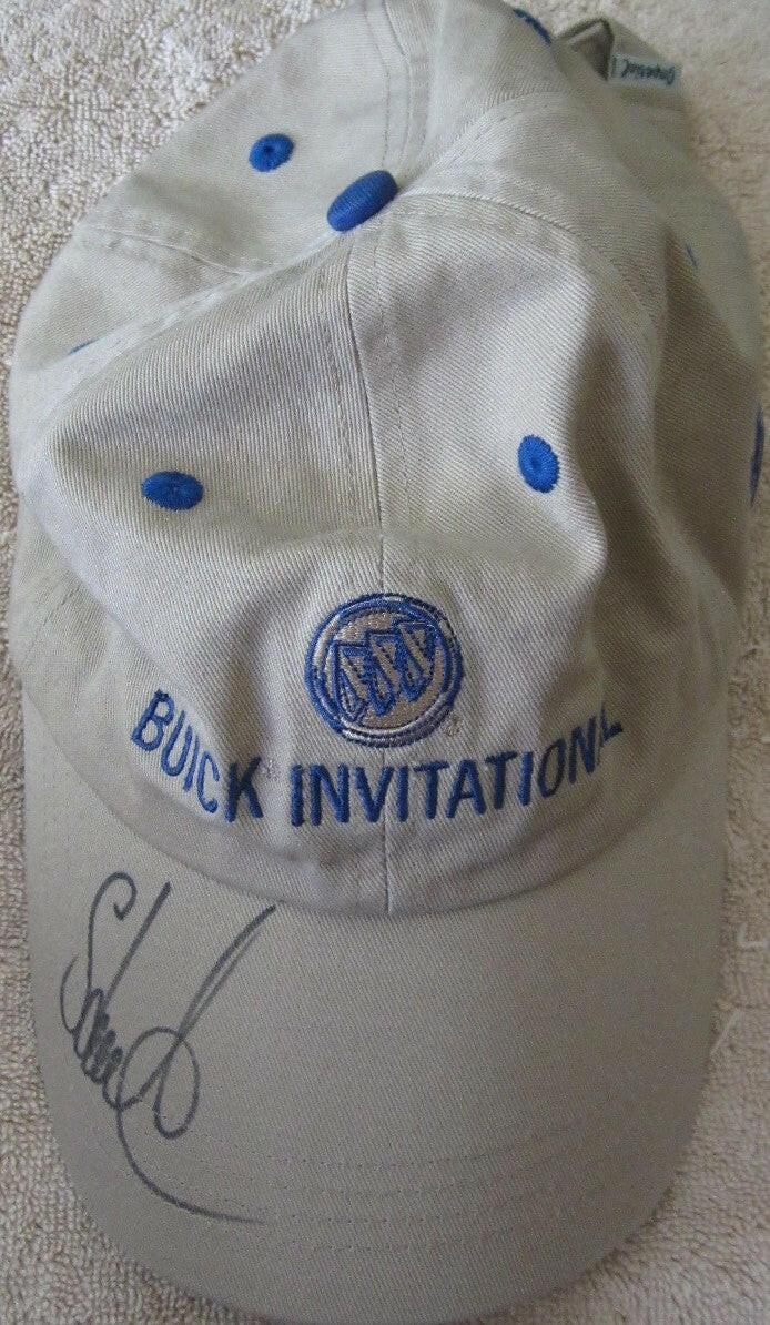 Khaki color Buick Invitational PGA Tour embroidered golf cap or hat (probably from the early 2000s) autographed on the bill in black Sharpie by Australian star Stuart Appleby. Obtained in person, with certificate of authenticity from AutographsForSale.com. ONLY ONE AVAILABLE FOR SALE.