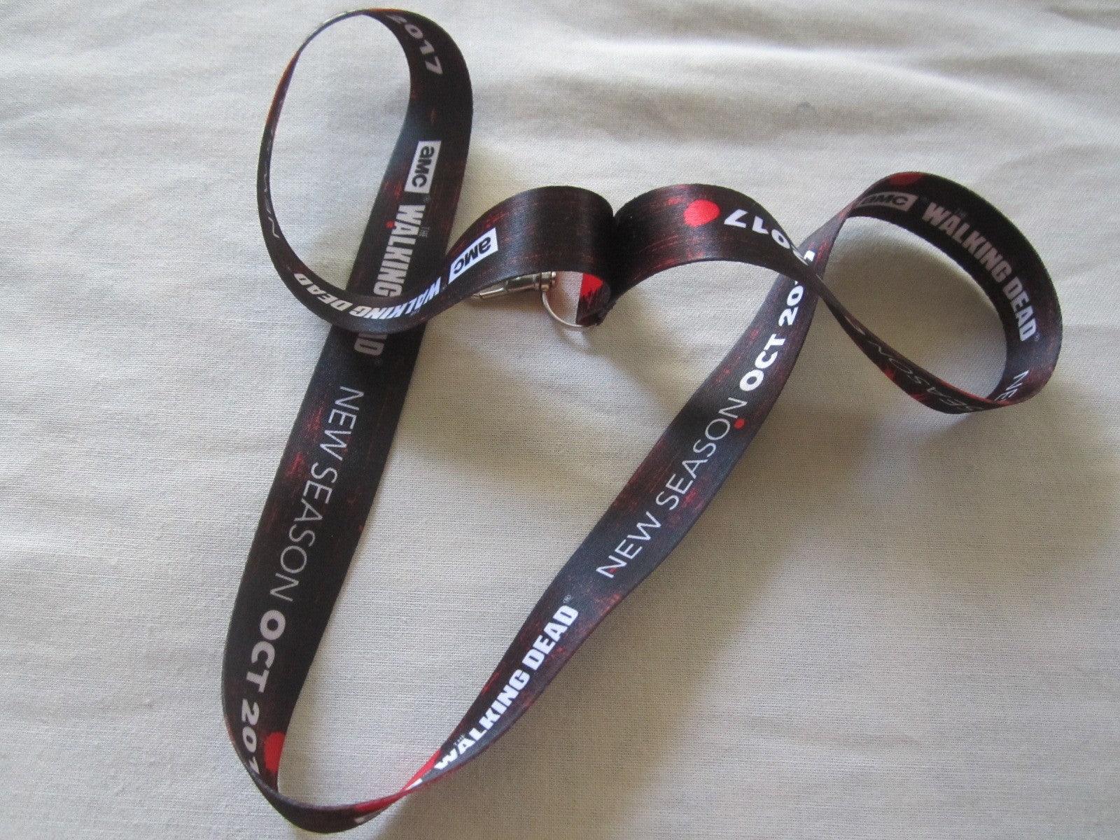 The Walking Dead 2017 San Diego Comic-Con black cloth lanyard offers fans a unique and stylish way to show off their love for the iconic television series. This collectible piece is perfect for anyone looking to enhance their everyday carry with a touch of fandom.