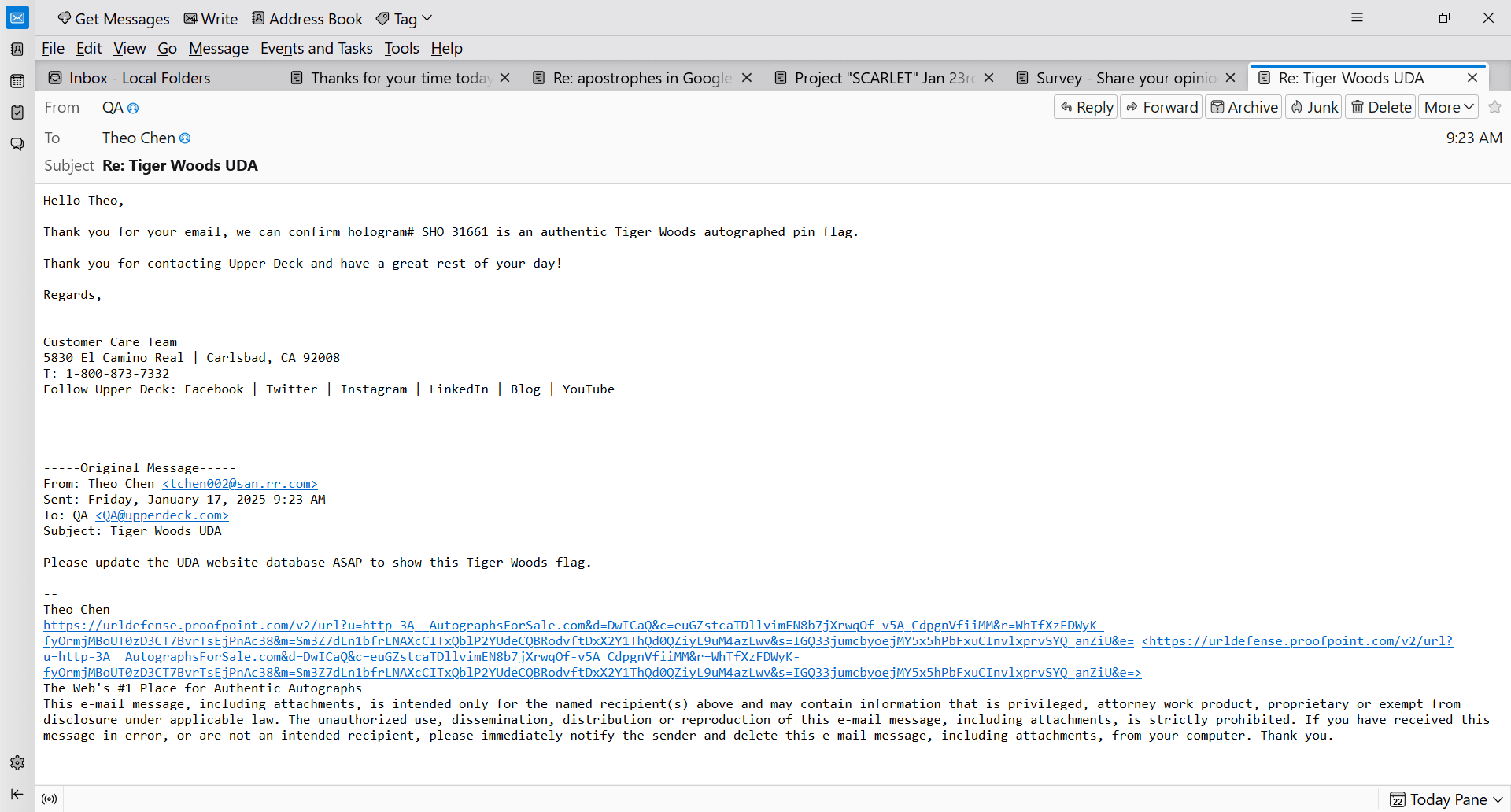 this Tiger Woods signed flag comes with UDA (Upper Deck Authenticated) certification, featuring their patented five-step authentication process with matching numbered holograms on both the flag and certificate of authenticity. Hologram #SHO31661 (can be verified by contacting Upper Deck directly).