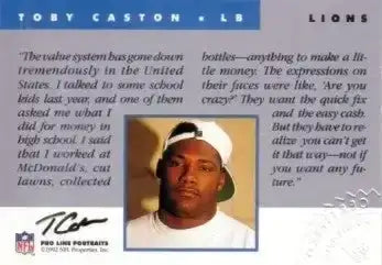 Toby Caston certified autograph Detroit Lions 1992 Pro Line card - AutographsForSale.com