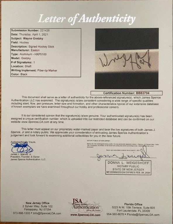 Wayne Gretzky signed LA Kings Easton game model hockey stick JSA - AutographsForSale.com
